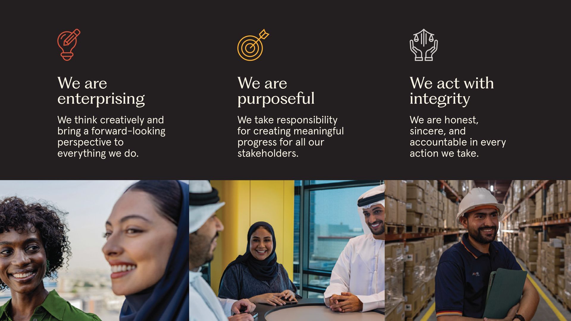 As we unveiled our refreshed brand in October 2025, we also introduced a renewed culture and a set of values that capture who we are and how we aspire to work together. Our culture at AWR Group isn’t written in manuals or confined to meetings. It lives in our daily actions, in the choices we make, and in the way we show up for one another. These values are the foundation of how we think, collaborate, lead, and grow, as individuals and as one group. They reflect our shared belief that true progress happens when creativity meets integrity, when ambition is driven by purpose, and when every one of us feels empowered to make a difference. We Are Enterprising We think creatively and embody a forward-looking spirit. Being enterprising means having the curiosity to explore new ideas and the courage to bring them to life. It’s about being bold enough to challenge the norm, take initiative, and keep learning from every experience. This mindset fuels passion in our work environment, inspiring innovation, agility, and growth. We celebrate those who see opportunity in change and who turn possibilities into meaningful progress. We Are Purposeful We feel a responsibility to create meaningful progress for all. Purpose is what turns work into contribution. At AWR Group, it means staying connected to something bigger than ourselves, creating value that goes beyond profit and builds a legacy of trust and impact. Being purposeful is about working with intention, aligning our efforts to a clear direction, and finding fulfilment in making a real difference for our customers, communities, and colleagues. We Act with Integrity We are honest, sincere, and accountable in everything we do. Integrity is our foundation - the value that shapes how we lead, decide, and interact. It’s about doing the right thing, even when no one is watching. Acting with integrity means showing fairness and transparency, respecting the legacy of our founders, and holding ourselves to high ethical standards. It fosters trust, strengthens relationships, and sustains the culture we are proud to build every day. Across more than 3,300 colleagues and 65 nationalities, these values unite us. They give meaning to our work and direction to our future. We have also since introduced our Culture Ambassadors, colleagues from across the Group who will bring these values to life, spark meaningful conversations, and celebrate the moments when our culture truly shines. “Our brand refresh is more than a new look; it’s also a renewed promise to our people. These values are how we bring that promise to life: through everyday choices, courageous conversations, and a shared commitment to create an environment where every colleague can grow and contribute.” - Caroline Hobeika, Chief Human Resources Officer at AWR Group This is our culture in motion. Rooted in values, driven by people, and shaped by the choices we make together.