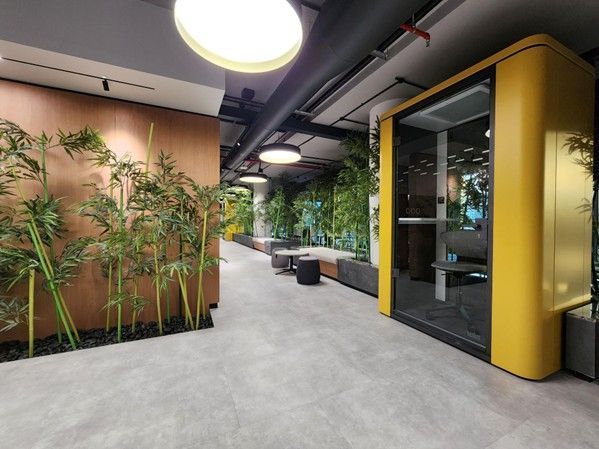 Departing from traditional corporate design, the new floor embraces a unique architectural concept centred around two inviting piazzas, aptly named "Serenity". Each piazza features an impressive olive tree, symbolising wisdom, longevity, and the tranquillity of nature. These communal hubs are designed to inspire connection and collaboration among employees, as well as create opportunities to recharge.